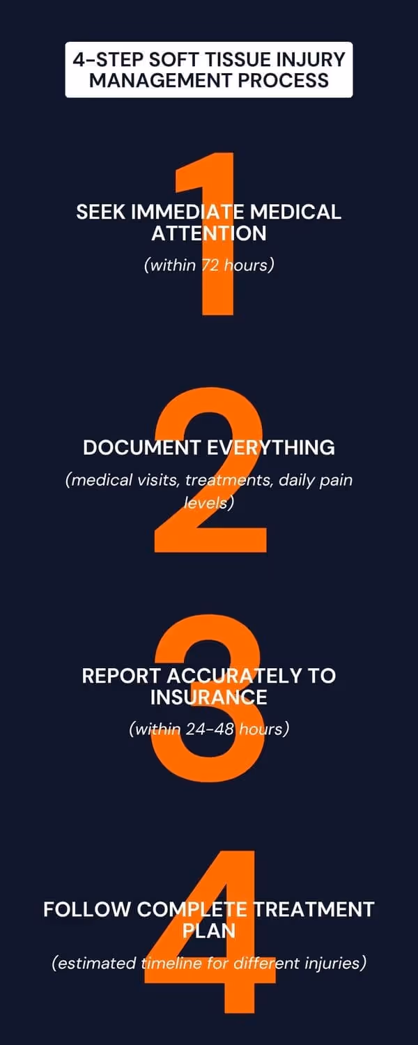 Follow these steps to effectively manage soft tissue injuries from car accidents: