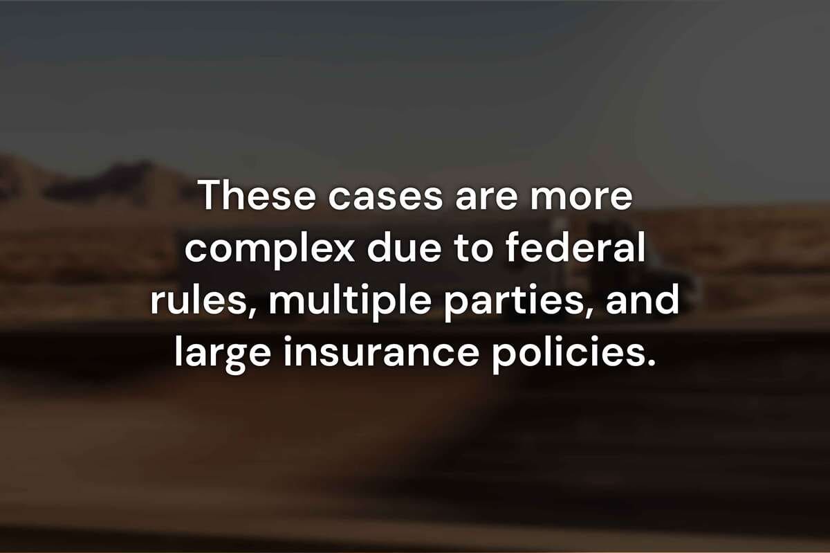 Lawsuits involving commercial trucking companies may take 12–24 months to resolve, depending on complexity and court availability.