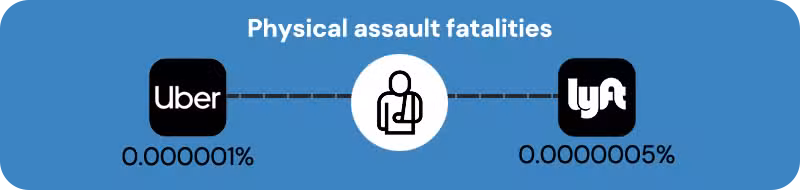 In 2019, the statistics for safety incidents in ridesharing apps Uber and Lyft revealed a low incidence rate, yet some differences between the two companies are notable. For Uber, motor vehicle fatalities constituted 0.000005% of all trips, slightly lower than Lyft’s 0.000006%. Physical assault fatalities were exceedingly rare in both, with Uber at 0.000001% and Lyft even lower at 0.0000005%.