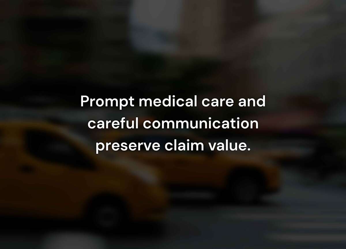 Avoid signing documents from the taxi company or their insurance carrier without attorney review. Release forms and settlement agreements may waive your right to future compensation. Insurance adjusters pressure quick signatures knowing most injuries require weeks to fully manifest and that early settlements cost them less money.